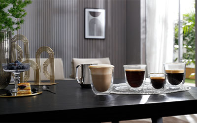 Enjoy easy user interaction, explore an intuitive interface and functionality with the soft-touch control panel featuring dedicated backlit black and white icons for recipes or personalising your favourite drinks. Recipes include Espresso, Coffee & Doppio+